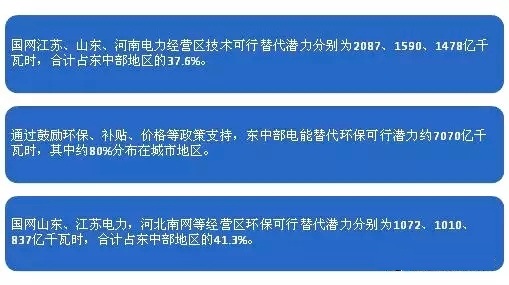 根據我國東中部能源供應與消費現狀,綜合考慮電能替代技術發展、經濟性和政策支持條件,結合相關省公司對居民采暖、工(農)業生產制造、交通、電力供應與消費、家庭電氣化5個重點領域的市場調查結論,公司經營區域東中部一線城市電能替代潛力巨大。