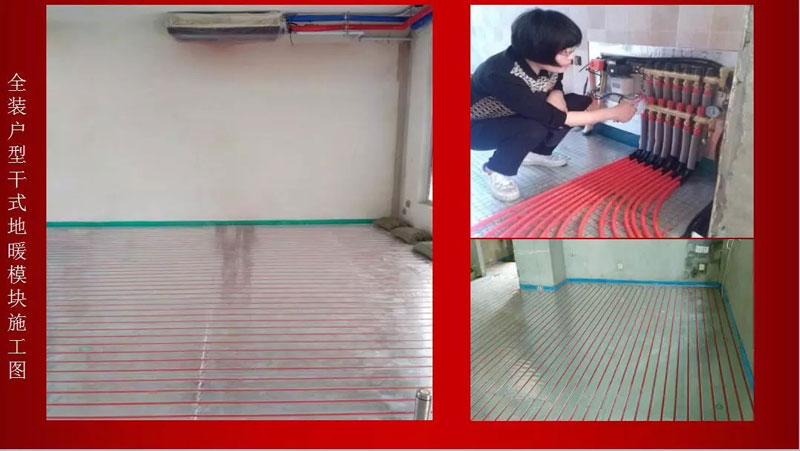 混裝戶型采用二次分水器、局部保護(hù)、水電聯(lián)動(dòng)、地磚后貼四種過(guò)管工藝。地磚區(qū)模塊在貼磚前鋪設(shè),可與主管道一并施工;地板區(qū)模塊在鋪地板前鋪設(shè),與主機(jī)一并施工;不用水泥回填干式地暖施工配合相對(duì)更簡(jiǎn)單!